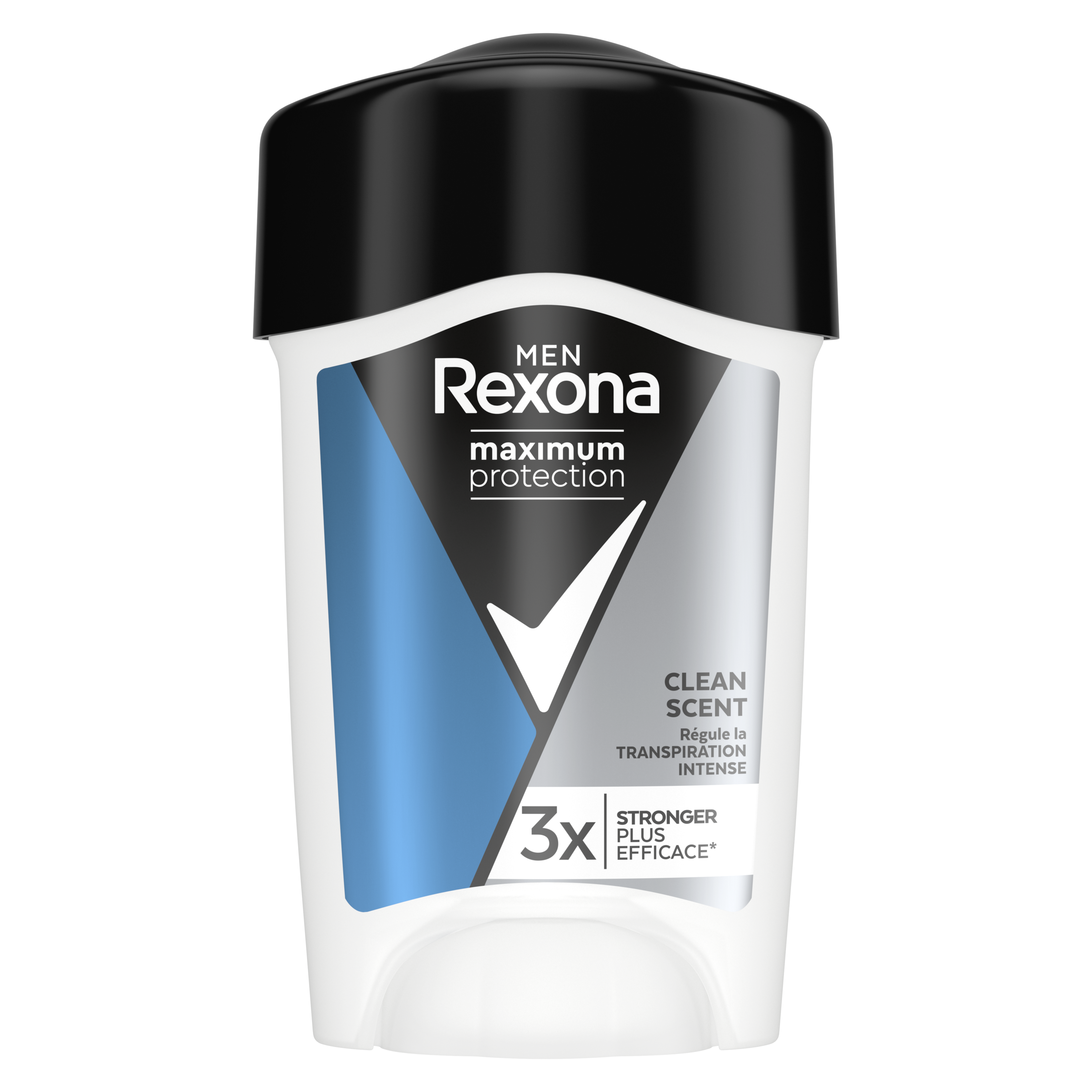 Ultra efficace pour lutter contre la transpiration excessive, le stick pour homme Rexona Maximum Protection Clean Scent place la barre toujours plus haut. Sa protection 3x plus efficace contre la transpiration* et les odeurs est tout simplement la meilleure chez Rexona. Facile à appliquer, deux clics suffisent. Formulé sans alcool, ce produit à la texture crème est doux pour la peau, et dégage un agréable parfum frais et boisé. Pour une efficacité optimale, appliquez le déodorant homme Rexona Maximum Protection sous les aisselles le soir, avant de vous coucher. Il agit pendant que vous dormez. La performance Maximum Protection reste efficace pendant 96 h, même après une douche. Vous pouvez également appliquer le déodorant anti-transpirant Maximum Protection le matin. Avec cette protection à vos côtés, tout est désormais possible.