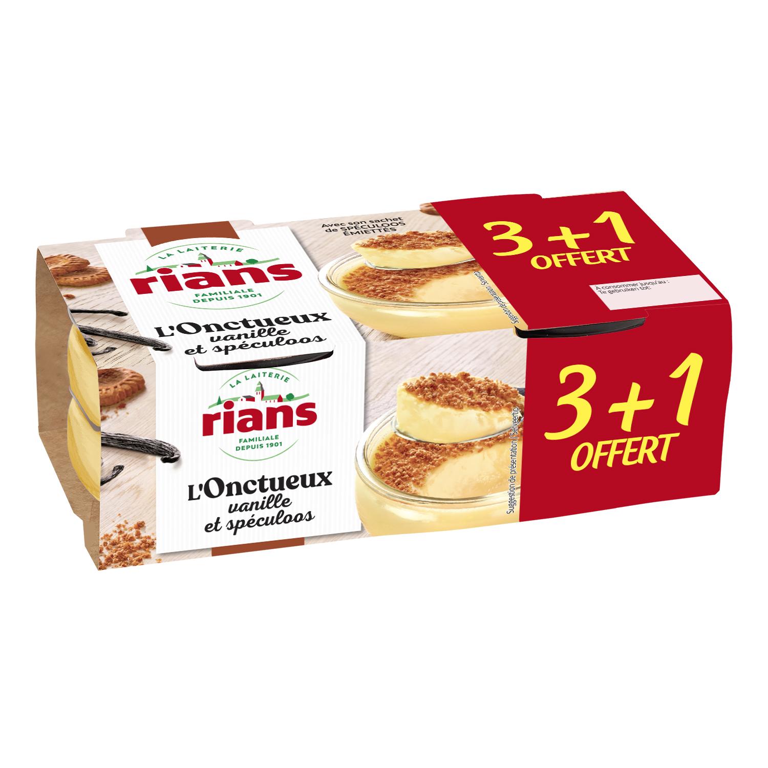 4 DESSERTS LACTÉS À LA VANILLE ET SACHETS DE SPÉCULOOS ÉMIETTÉS.