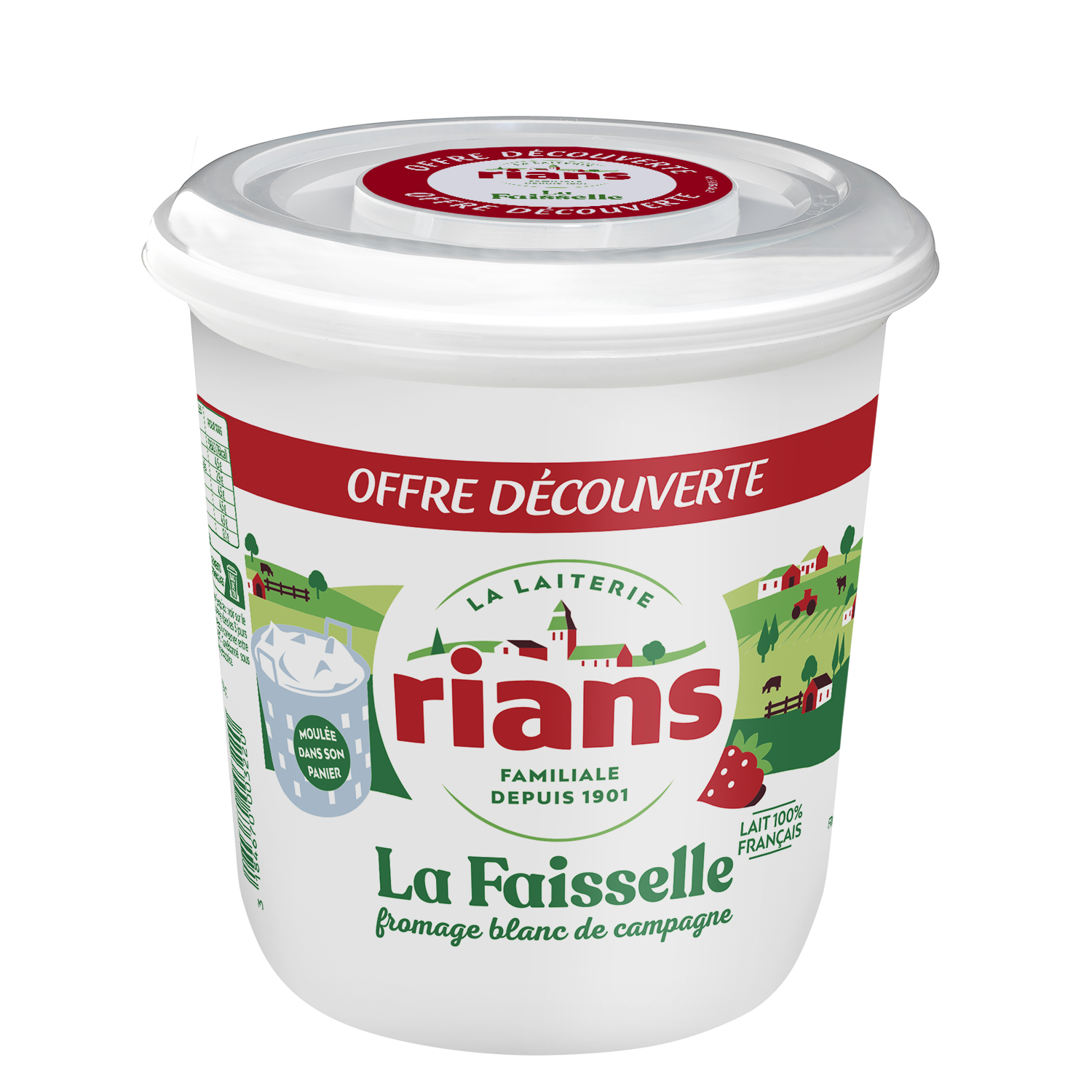 Fromage frais en faisselle au lait (origine: France) pasteurisé.
