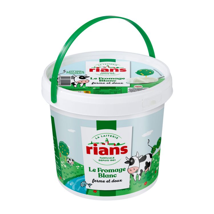 Fromage blanc frais au lait (Origine: France) et à la crème (origine: France) pasteurisés.