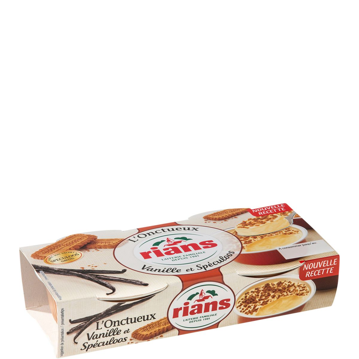 Ingrédients : Ingrédients:#l'Onctueux 86g : CREME*, LAIT* écrémé,sucre, OEUFS* frais, Jaune d'OEUFS frais, Arôme naturel de vanille de Madagascar (0.7%), épaississant: amidon. ##Garniture 4g : Biscuit Spéculoos (farine de BLE, sucre de canne, huiles et graisses végétales (palme, tournesol),miel, farine de SOJA, poudre à lever,cannelle).#*Origine: France.