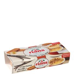 L' Onctueux spéculoos , 2x90g Fidèle à son nom évocateur, L'Onctueux Vanille et Spéculoos Rians offre une texture crémeuse et fondante ainsi qu'un goût fin et délicat de vanille de Madagascar. La crème vanille est relevée d'un inattendu croustillant avec son émietté de Spéculoos qui viendra envelopper le palais de sa saveur intense. Une expérience de tous les sens à savourer !