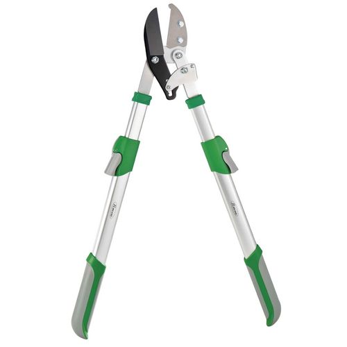 Cisaille télescopique démultipliée. Caractéristiques: Produit: Cisaille télescopique démultipliéeLame Téflon®: épaisseur: 4 mm.Enclume épaisseur: 10 mm en acier chromé carbone #S50C trempé Dupont Teflon .Système de démultiplication par crémaillère.Manches télescopiques de 320 à 800 mm.Poignées er