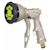 Pistolet multi-jets pour le jardin et nettoyer toutes surfaces, arroser les fleurs avec un jet nébulisé et les plantes lointaines avec un jet concentré. S'adapte avec les raccords automatiques en 15 et 19 mm. Levier avant avec réglage micrométrique du débit ou blocage par gâchette. Débit maximum: 10 l/min à 3 bar.