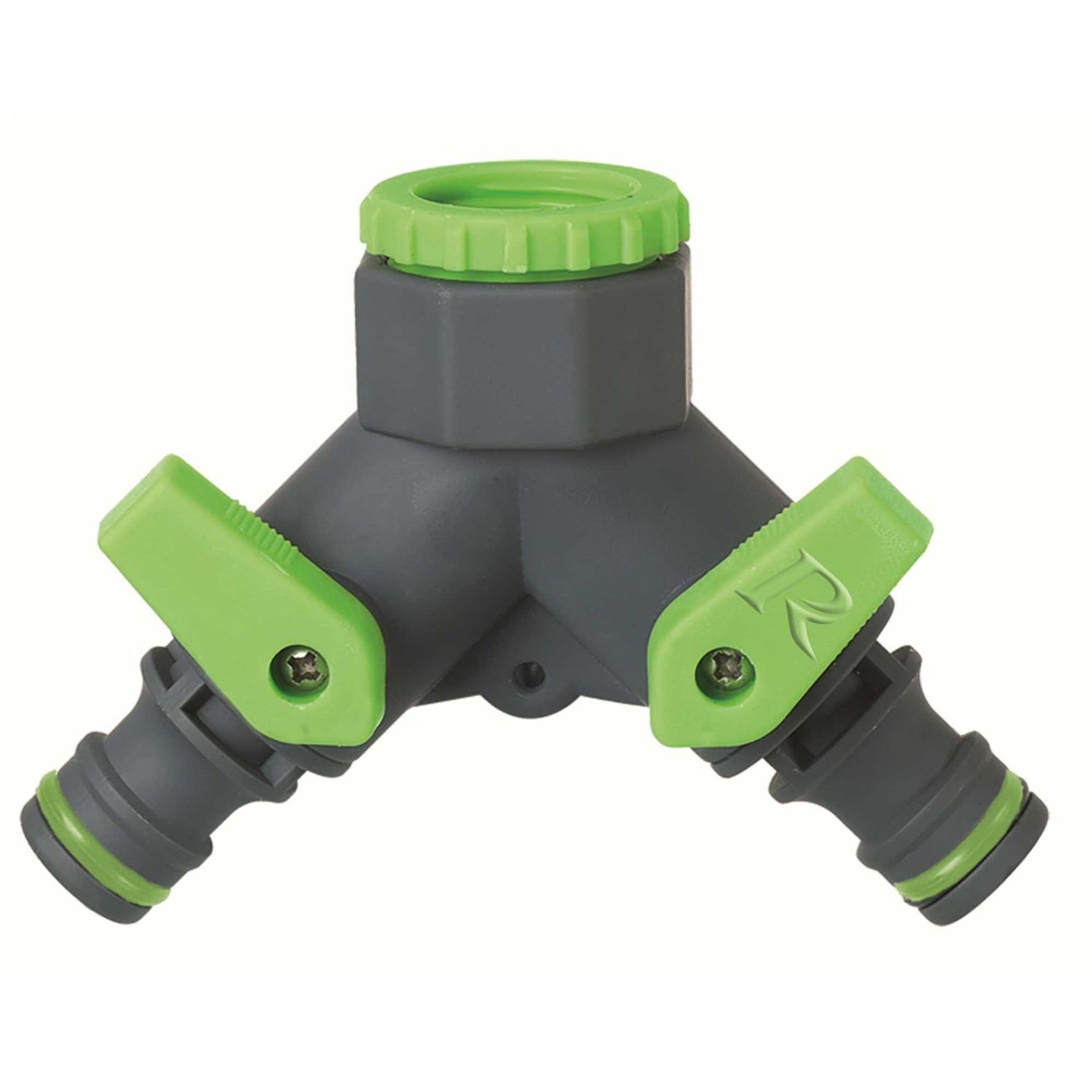 Ce té de nez de robinets, très pratique, assure un arrosage multiple grâce à 2 sorties en simultané.Raccord rapide de sortie.