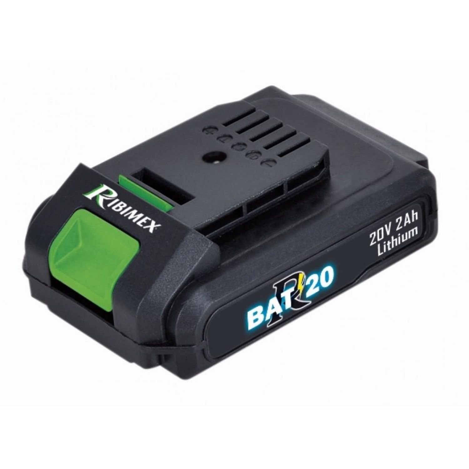 Ribimex PRBAT20/2 Batterie 20V - 2 Ah fonctionnant sur tous les appareils Ribimex sans fil de la gamme R-BAT20 - Batterie Li-Ion 20 V - 2 Ah. Avec témoin de charge.Nos batteries sont équipées d'une protection électronique individuelle des cellules contre les sous tension, surtension, surcharge en co