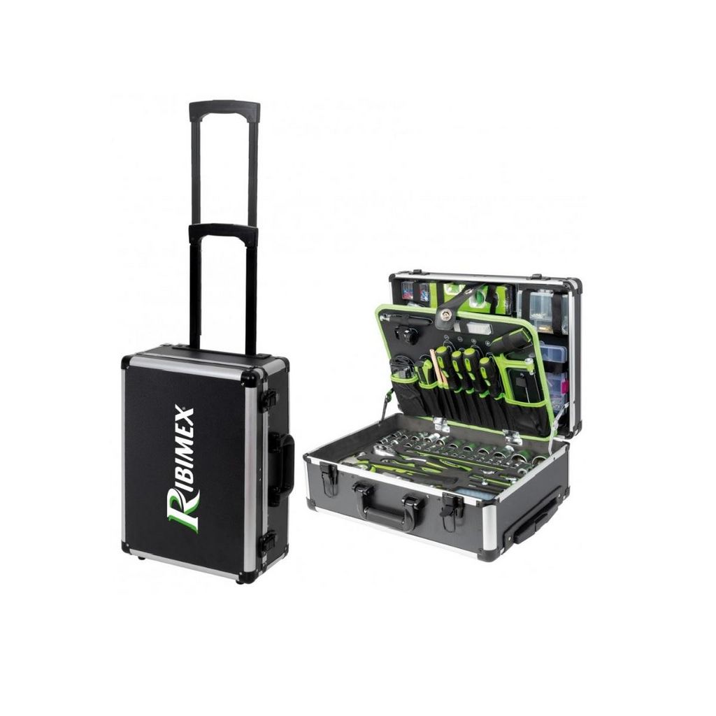 Ribimex PRKOUT356VAR Valise séduction PRKOUT356VAR de RIBIMEX avec 356 pièces. - Type de produit : Valise modulable en trolley avec 356 pièces.Aulti-compartiments.Matière : Aluminium.1 lime 200 mm.1 pince à dénuder et à couper pour fils électriques, en acier carbone, long. 200 mm.1 pince universelle