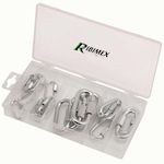 Ce coffret comprend des maillons rapides de 17 x 36 mm, de 20 x 40 mm, de 23 x 49 mm, de 27 x 58 mm, de 31 x 65 mm et de 34 x 75 mm.