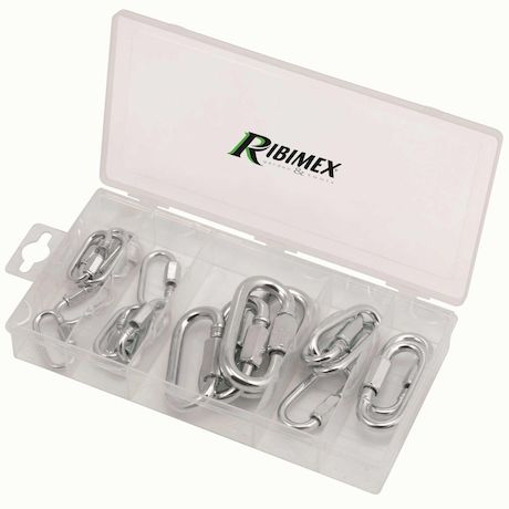 Ce coffret comprend des maillons rapides de 17 x 36 mm, de 20 x 40 mm, de 23 x 49 mm, de 27 x 58 mm, de 31 x 65 mm et de 34 x 75 mm.Ils sont en acier galvanisé.
