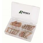Description: - coffret de goupilles à clip pour tubes assorties - coffret de la marque Ribitech - coffret de 25 goupilles à clip - 4 tailles de goupilles à clip - taille 1: Ø 4,5 mm x 38 mm - taille 2: Ø 6 mm x 45 mm - taille 3: Ø 8 mm x 45 mm - taille 4: Ø 10 mm x 45 mm - facile d'utilis