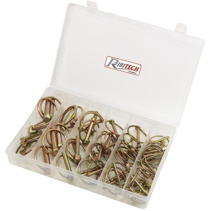 Description: - coffret de goupilles à clip assorties - coffret de la marque Ribitech - coffret de 50 goupilles à clip - 4 tailles de goupilles à clip - taille 1: Ø 5 mm x 36 mm - taille 2: Ø 6 mm x 45 mm - taille 3: Ø 8 mm x 45 mm - taille 4: Ø 11 mm x 45 mm - facile d'utilisation - ne né