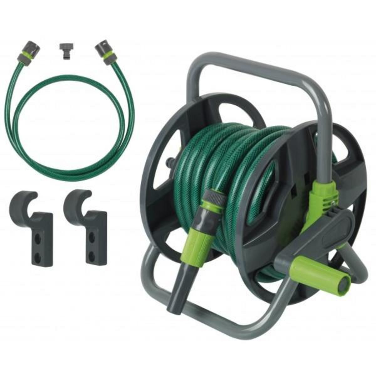 Ribitech PRA/DB.1104 Entrenez votre jardin avec ce dévidoir portable équipé de tuyaux.Avec sa fixation murale et sa structure en métal laqué, elle assure solidité et légèreté. - Dévidoir portable entièrement équipé1 tuyau de 15 m /12,5 mm de diamètre 1/21 lance multijets 2 raccords1 tuyau d alimenta