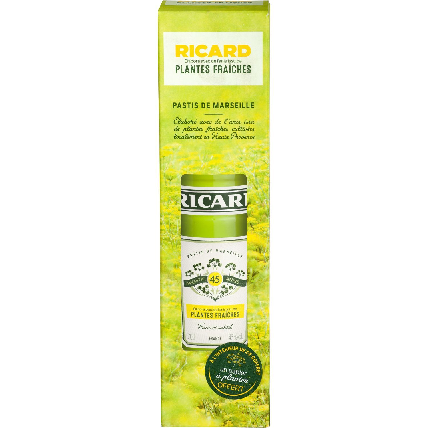 Pastis de Marseille En 1932, Paul Ricard mit au point son fameux Pastis de Marseille, inspiré par les ingrédients aromatiques de Provence. Aujourd'hui Ricard s'inspire à nouveau de son origine pour proposer une recette inédite. Ce pastis, frais et subtil, est élaboré avec de l'anis exclusivement issu de plantes fraîches. Ces plantes sont soigneusement cultivées par des producteurs locaux sur le plateau de Valensole en Haute-Provence. Récoltées sur des parcelles gorgées de soleil et distillées le jour même, elles offrent leurs qualités aromatiques uniques : un profil anisé très frais, relevé de subtiles notes végétales.