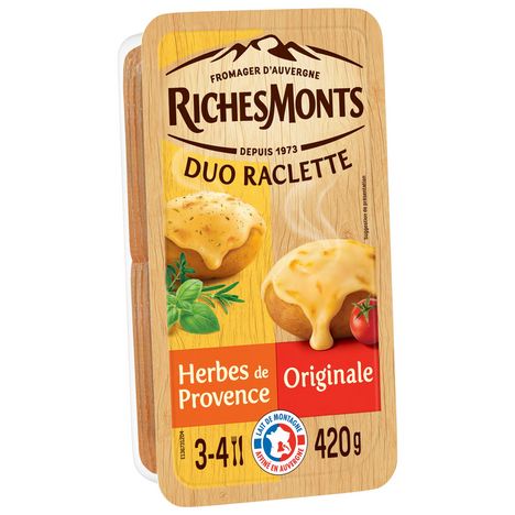La raclette RichesMonts Herbes de Provence vous fera voyager dans le sud de la France avec son bouquet de romarin, thym, sarriette, basilic et marjolaine. Quoi de mieux pour varier les plaisirs lors d'une raclette party.