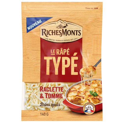 Découvrez le premier fromage râpé avec de la raclette. Une alliance unique de 3 fromages (raclette, tomme et emmental) pour un goût à la fois fruité et typé.