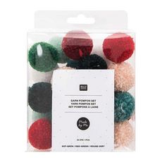 24 pompons en laine vert et rouge de Noël