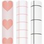 En savoir +Offrez de jolis cadeaux bien emballés avec ces 3 rouleaux de papier cadeau ! Les rouleaux de papier cadeau sont une excellente façon d'ajouter une touche personnelle à vos cadeaux. 3 designs différents : coeurs roses, carreaux roses et grands carreaux noirs et blancs. Les motifs de coeurs et de carreaux apportent une touche décorative à vos paquets cadeaux, les rendant encore plus spéciaux pour vos proches. Les rouleaux mesurent 70 cm x 2 m, ce qui offre une quantité suffisante de papier pour envelopper plusieurs cadeaux.