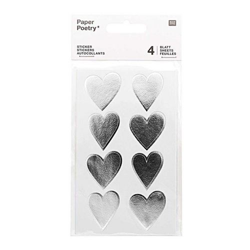 4 feuilles d'autocollants cœurs argentés. Customisez à l'infini avec ces autocollants cœurs argentés !