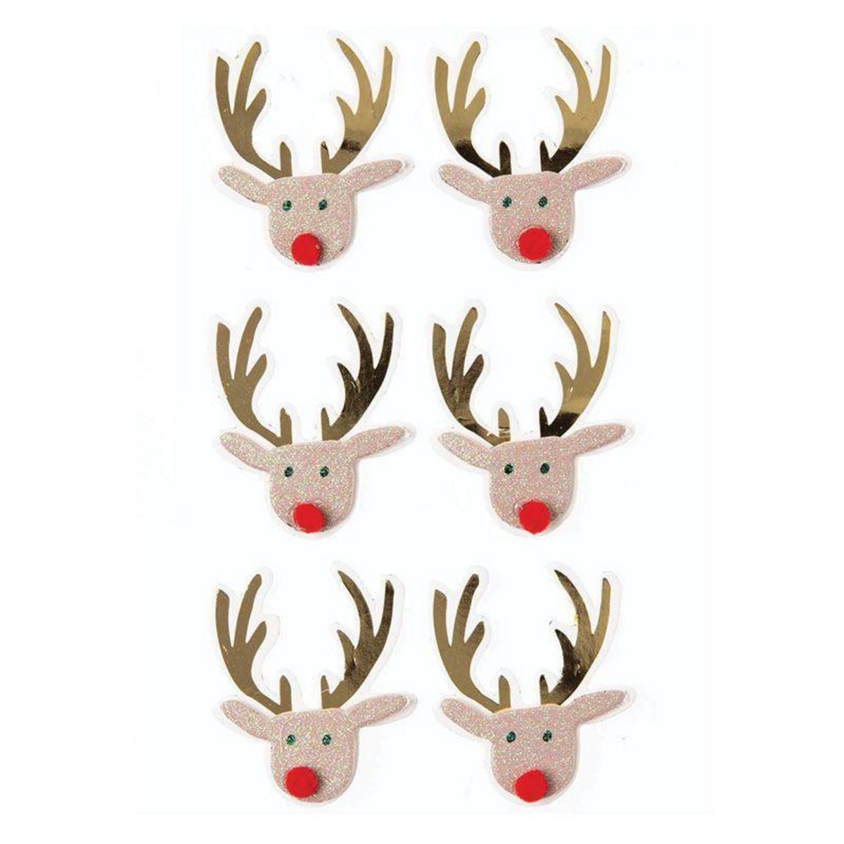 Pour décorer vos cartes de voeux et vos autres projets de carterie, ces 6 stickers en forme de tête de rennes, avec paillettes et pompon rouge, seront parfaits pour vous plonger dans l'ambiance de Noël!