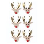 Pour décorer vos cartes de voeux et vos autres projets de carterie, ces 6 stickers en forme de tête de rennes, avec paillettes et pompon rouge, seront parfaits pour vous plonger dans l'ambiance de Noël!Les cornes des rennes sont dorées, le nez est représenté par un pompon rouge et les tête des rennes sont recouvertes de paillettes fines.Chaque renne mesure 3,5 cm de hauteur.Vous pourrez coller facilement vos stickers rennes car un petit carré autocollant est présent au dos de la tête.