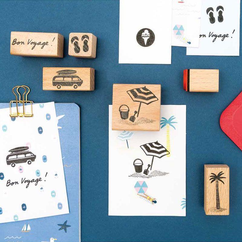Apportez un air de vacances à toutes vos créations avec ces 6 tampons en bois et leur encreur !