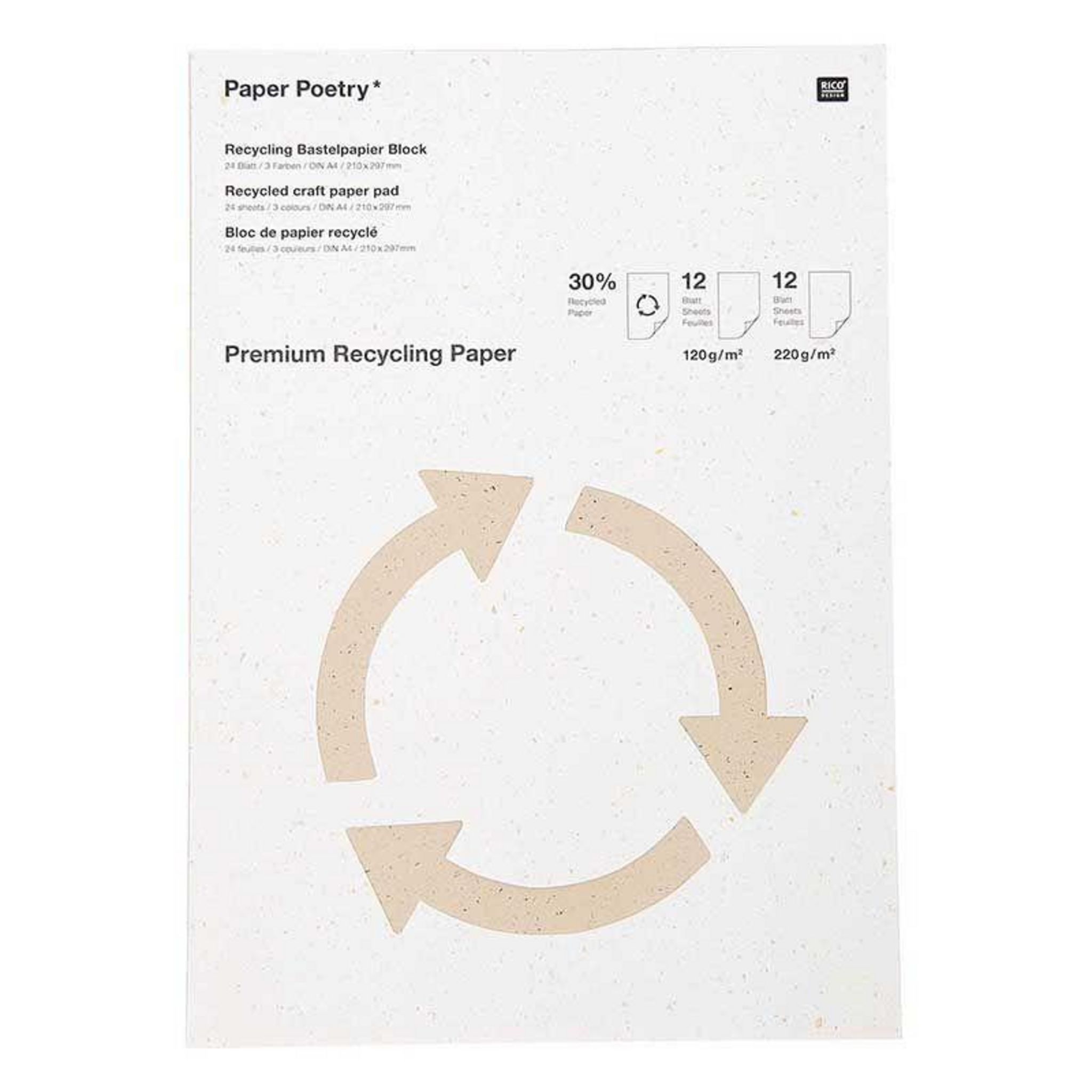 24 feuilles de papier recyclé pour bricolage, format A4, de la marque Rico Design, couleurs naturelles.