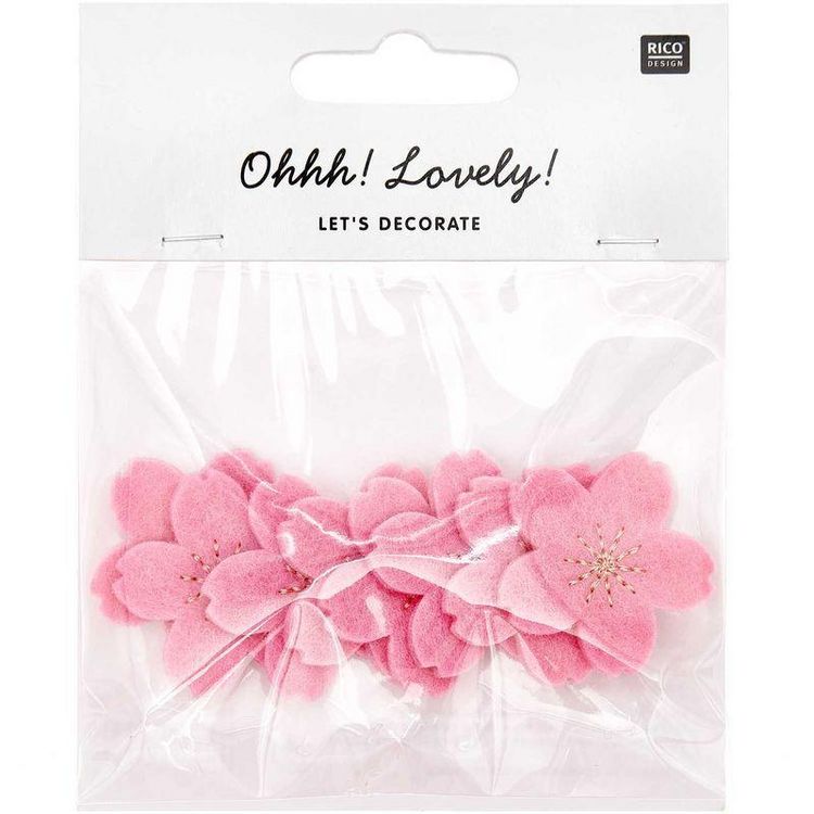 Des confettis en feutrine, 8 fleurs de cerisier rose et or brodé