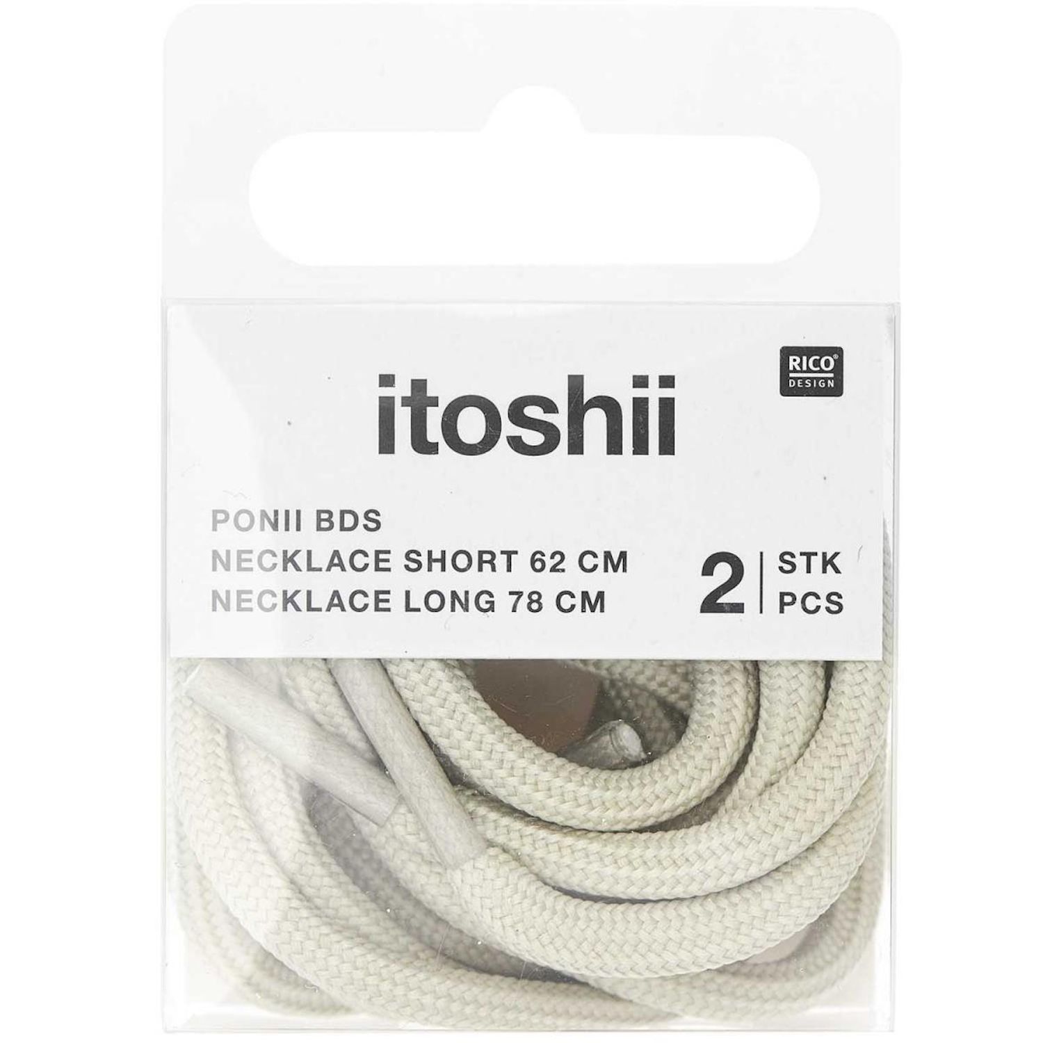 pack de 2 cordons de 2 tailles differentes :. 1 x chaîne courte 62 cm x Ø 4 mm. 1 x longue chaîne 78 cm x Ø 4 mm. 4 stopper perles