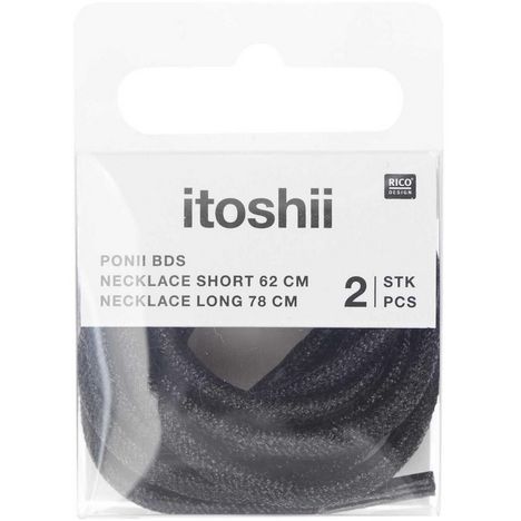 pack de 2 cordons de 2 tailles differentes :. 1 x chaîne courte 62 cm x Ø 4 mm. 1 x longue chaîne 78 cm x Ø 4 mm. 4 stopper perles