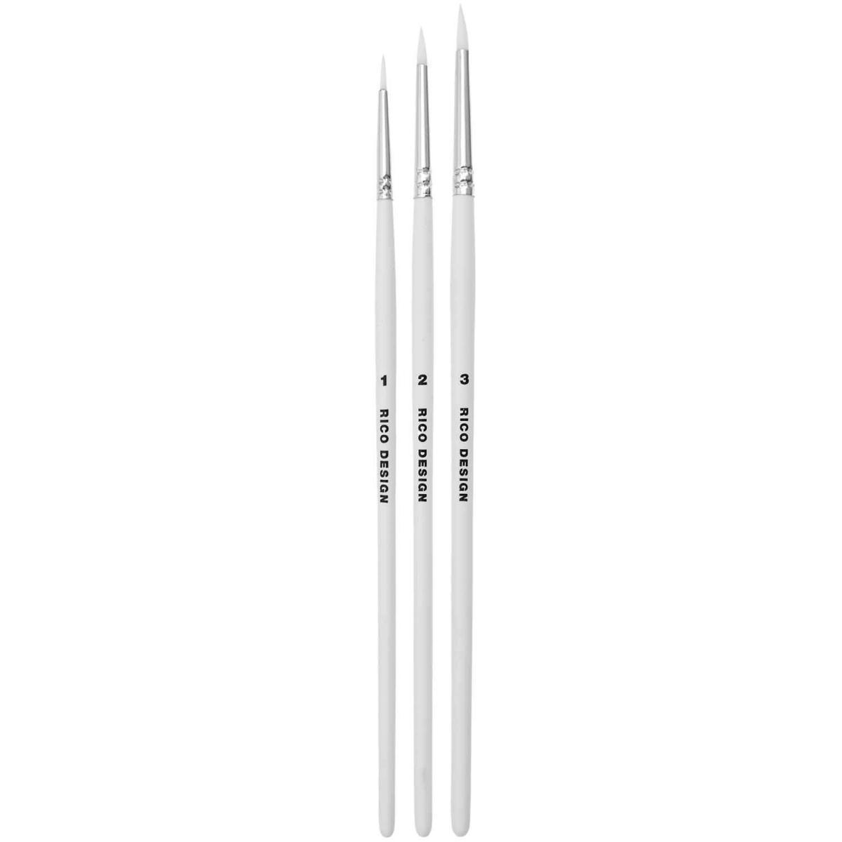 Set de pinceaux acryliques ronds, 3 pcs,, blanc, tailles 1, 2 et 4