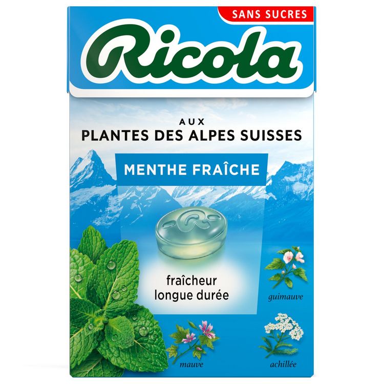 Les bonbons Menthe Fraîche sans sucres associent nos 13 plantes des Alpes suisses avec des huiles essentielles de menthe poivrée pour une sensation durable de fraîcheur au bon goût de menthe.