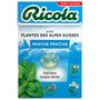 Édulcorant (isomalt), extraits (0,4%) de menthe poivrée et du mélange de 13 plantes Ricola, huile essentielle de menthe poivrée, menthol, extrait-couleur de spiruline, arôme naturel, édulcorant (glycosides de stéviol issus de Stevia)