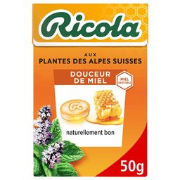 Les bonbons Ricola Douceur de Miel associent le fameux mélange de 13 plantes des Alpes suisses avec du miel issu du commerce équitable et du menthol, délicieusement bienfaisant pour la gorge*. *Chaque bonbon contient 2 mg de menthol