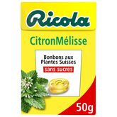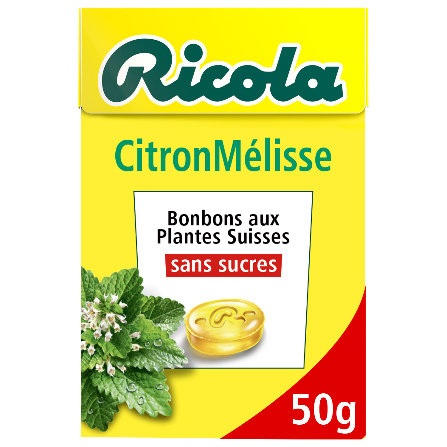 CitronMélisse Bonbons Suisses aux Plantes sans sucres avec édulcorants Bonbons suisses aux plantes, sans sucres. Gourmand et rafraîchissant. Ricola CitronMélisse contient le fameux et délicieux mélange de 13 plantes des montagnes suisses.