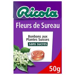 Les bonbons Ricola Fleurs de sureau sans sucres associent nos13 plantes des Alpes suisses avec la saveur suave et fruitée de la fleur de sureau. Un équilibre parfait pour un goût délicieusement frais.