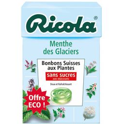 Avec des menthes soigneusement sélectionnées au cœur des moraines glaciaires, en association avec le fameux mélange de 13 plantes Ricola. Rafraîchit les voies respiratoires. Menthe Douce des Glaciers Bonbons Suisses aux Plantes sans sucres avec édulcorants