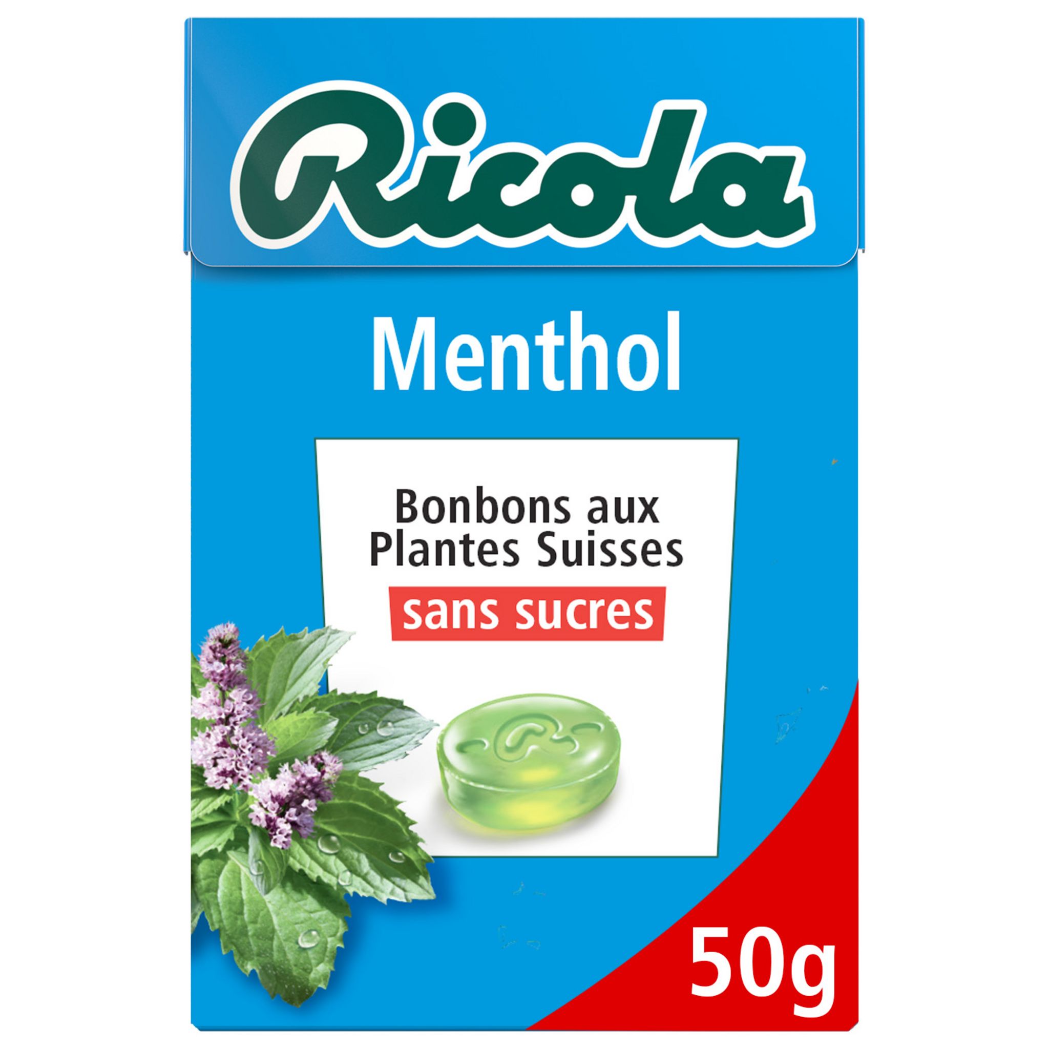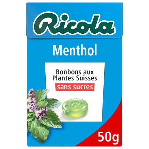 Menthol Bonbons Suisses aux Plantes sans sucres avec édulcorants Bonbons suisses aux plantes, sans sucres. Extra-frais. Ricola Menthol contient le fameux et délicieux mélange de 13 plantes des montagnes suisses.