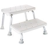 Surmontez n'importe quel obstacle dans votre salle de bain avec cet escabeau a 2 marches de la marque RIDDER ! Ce robuste escabeau est ideal non seulement pour entrer et sortir dans et de la baignoire, mais peut egalement etre utilise pour atteindre un miroir ou un meuble haut ou comme pouf pratique