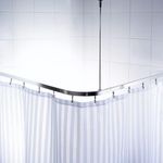 Ce rail de rideau de douche est robuste et droit grace au support de plafond inclus. Pour un montage exact et permanent du rail de rideau de douche universel, deux suspensions de plafond raccourcies (longueur maximale de 55 cm) sont incluses. Le rail peut egalement etre raccourci a tout moment et aucun anneau de rideau supplementaire n'est necessaire car il y a des crochets inclus. Les configurations suivantes sont possibles : 160 x 70 cm, 90 x 90 cm, 90 x 90 x 90 cm.