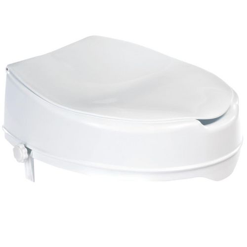Ce siege de toilette sureleve avec couvercle de la marque RIDDER permet aux personnes a mobilite reduite de s'asseoir et de se lever plus facilement.