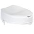 Ce siege de toilette sureleve a une capacite de charge maximale de 150 kg et s'adapte a tout decor de salle de bains grace a sa couleur blanche neutre.