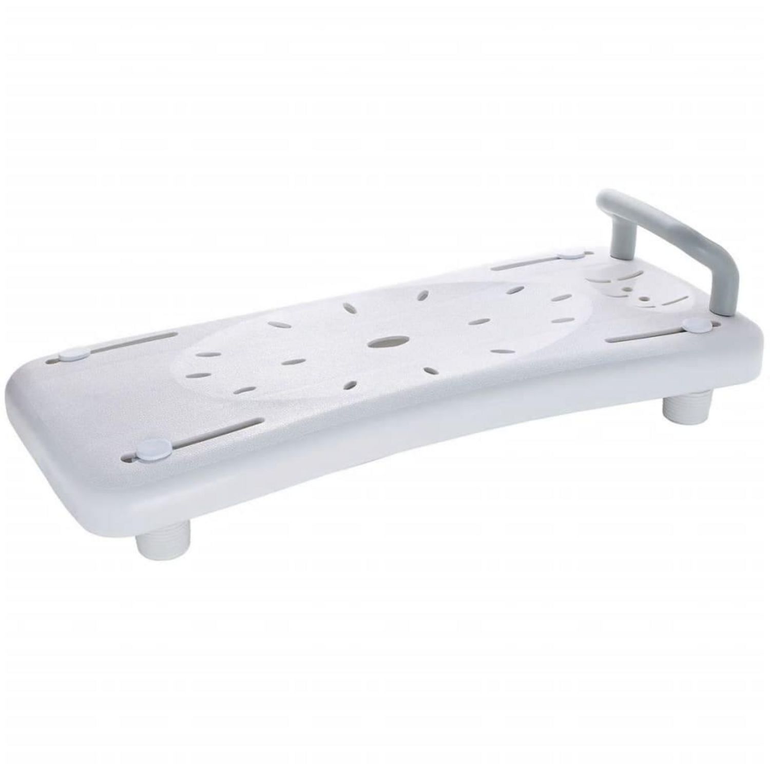 Il est non seulement confortable et antiderapant avec des bords arrondis et une poignee pratique qui vous aidera a utiliser la baignoire, mais qui sert aussi d'etagere de rangement pratique pour vos produits de soins. Le siege lui-meme est fabrique en plastique a faible entretien avec des trous de drainage et sa structure est en aluminium resistant a la rouille. Le siege de baignoire a une capacite de charge maximale de 150 kg et est reglable en largeur, ce qui le rend adapte a toutes les baignoires standard d'une largeur comprise entre 41 et 60 cm.
