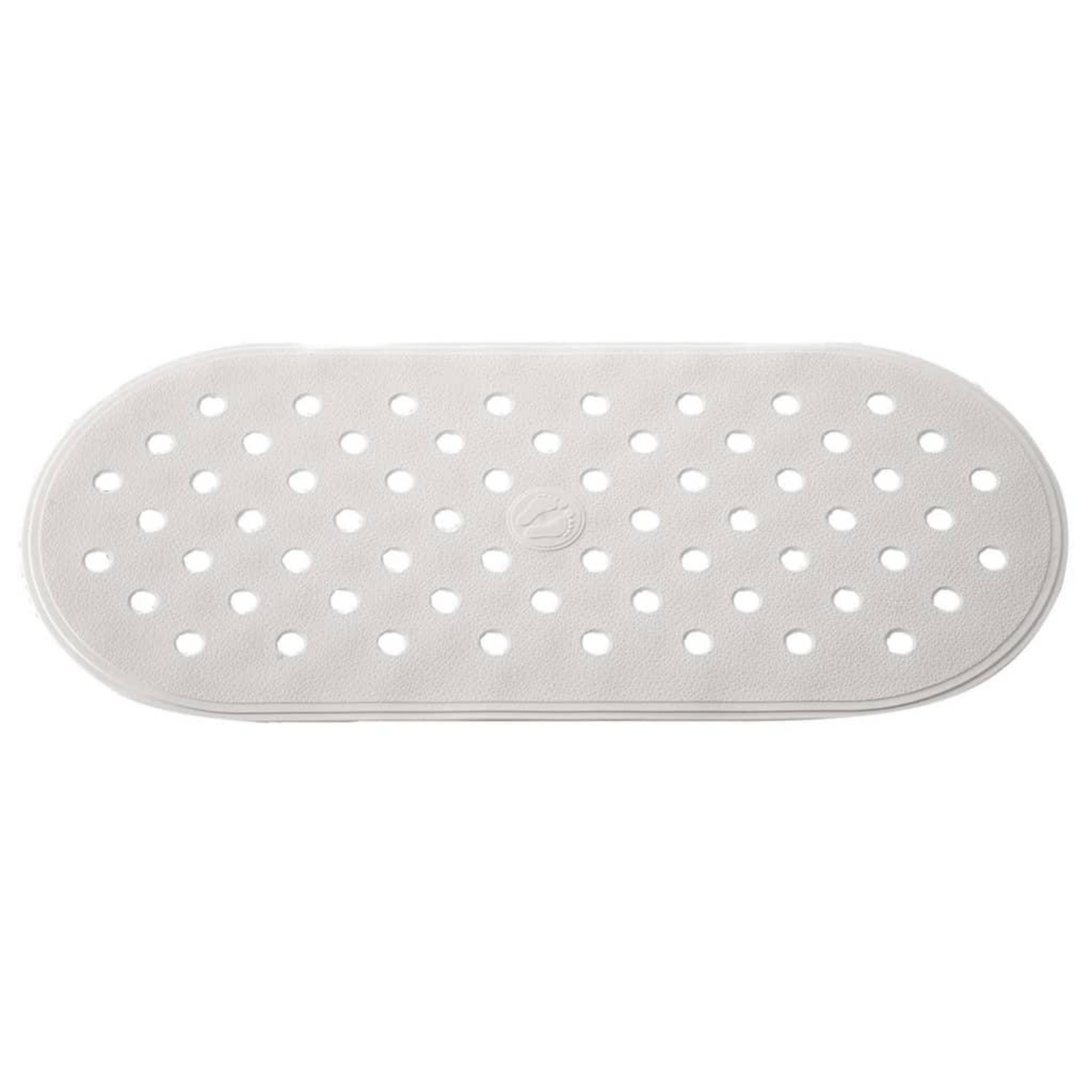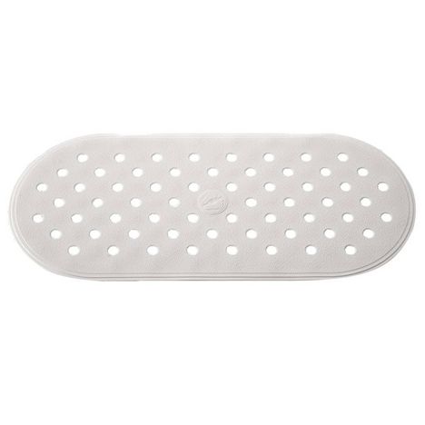 Ce tapis de douche allie haute qualite et bon sentiment de securite. Le tapis est maintenu en place par des ventouses afin qu'il puisse etre facilement retire pour le nettoyage. Ce coussin de douche est fait de caoutchouc 100 % synthetique et est doux pour la peau et confortable a utiliser. Il seche egalement rapidement grace aux trous integres (ne pas utiliser les trous pour accrocher le tapis).