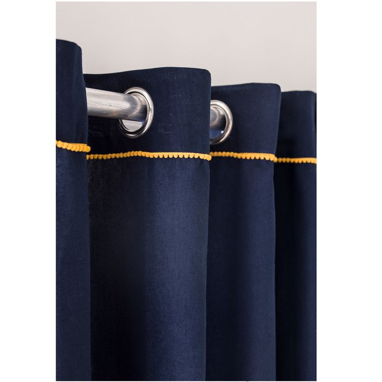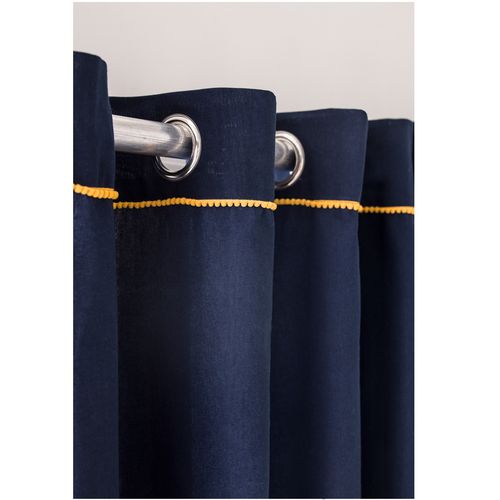 Rideau à oeillets en coton finition pompons contrastés