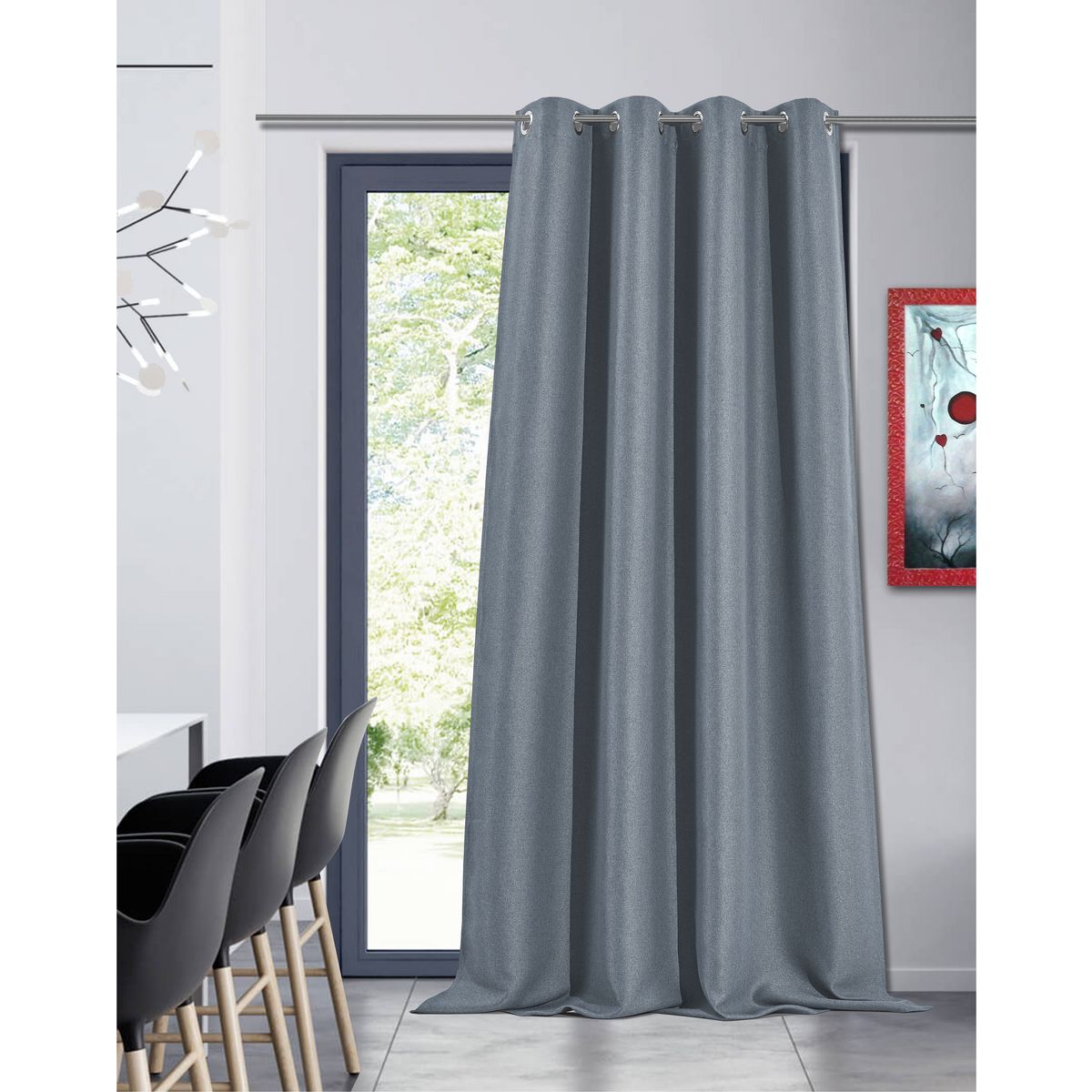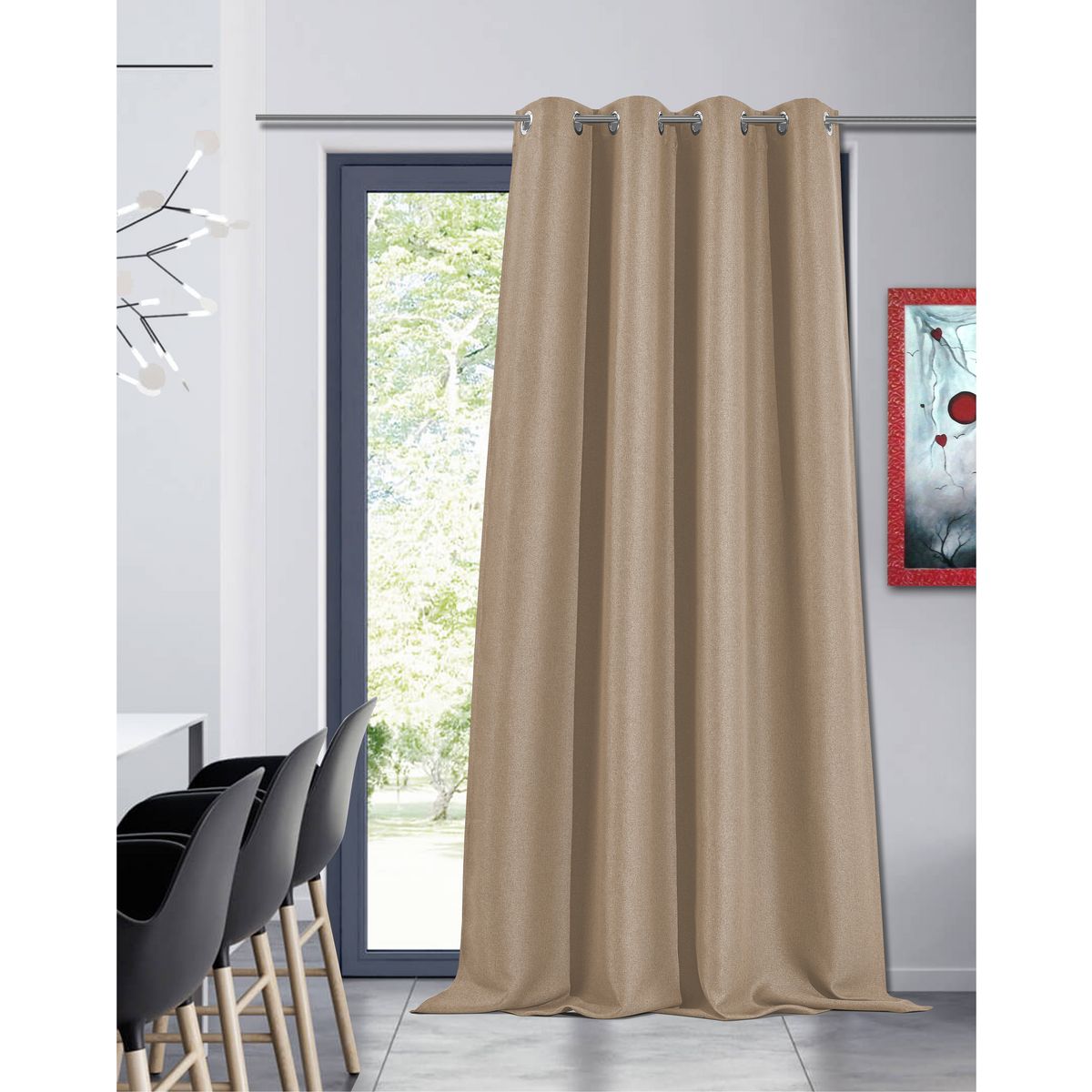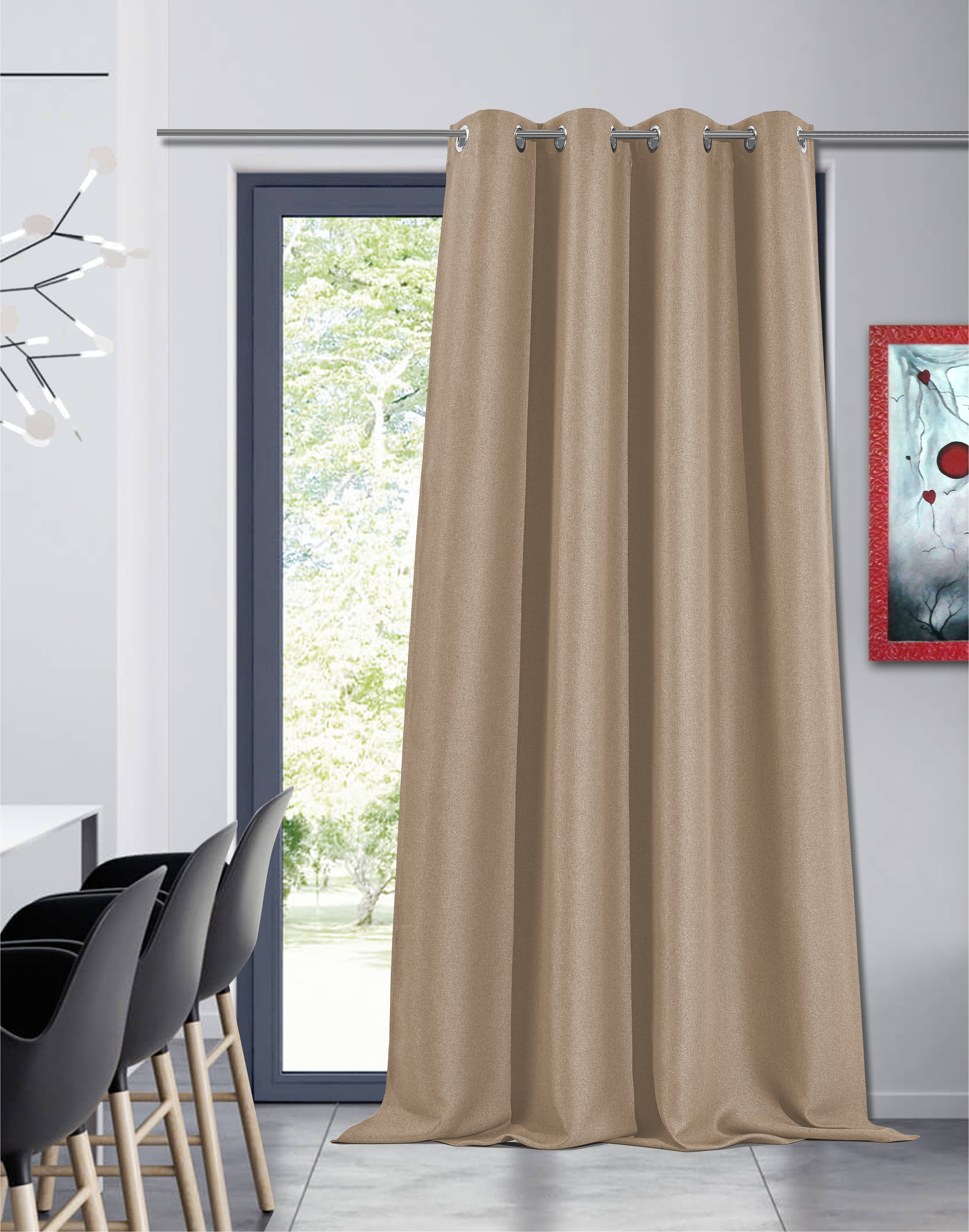 Rideau obscurcissant à oeillets en polycoton 140x260cm, idéal pour stopper la lumière tout en conservant la chaleur/fraîcheur de la pièce.