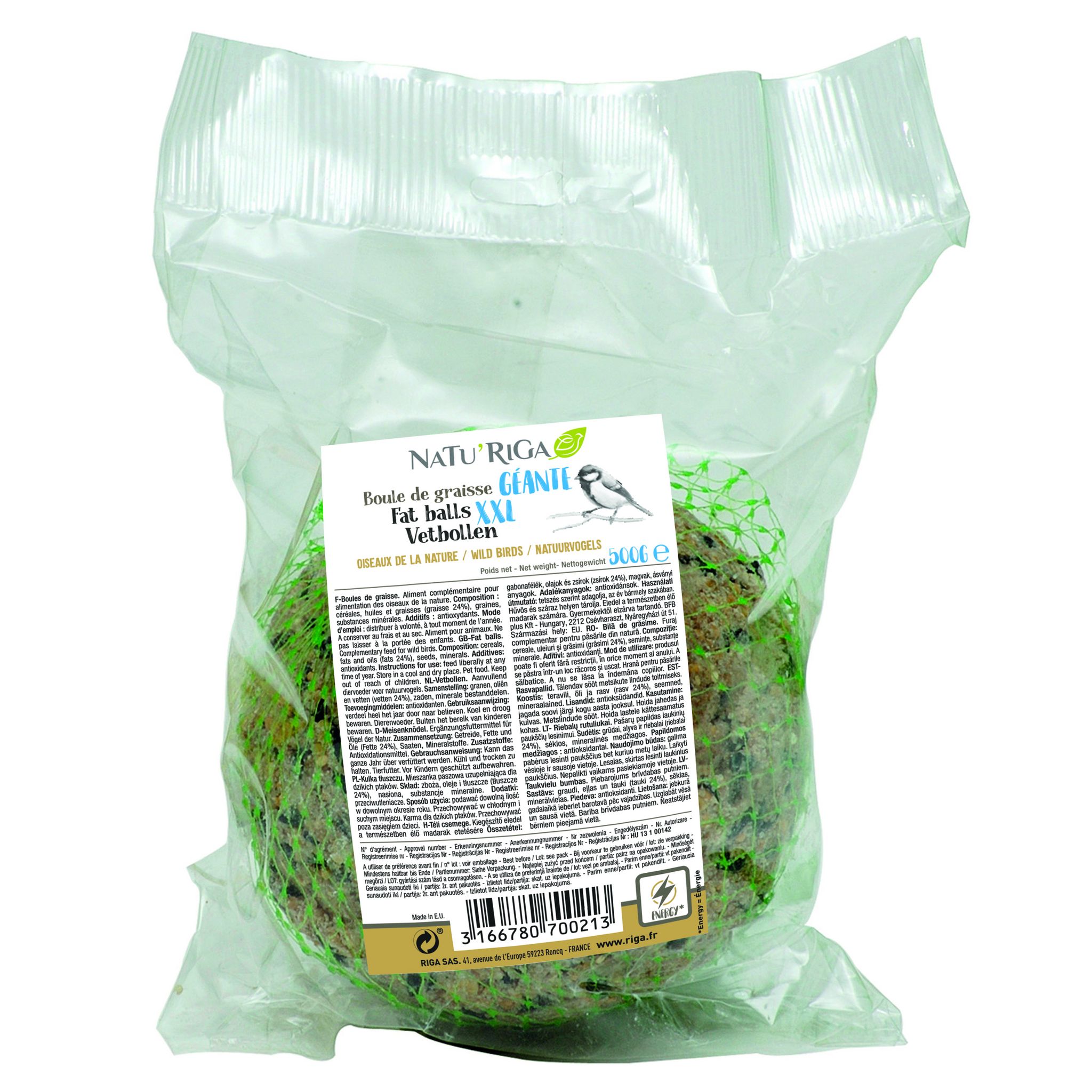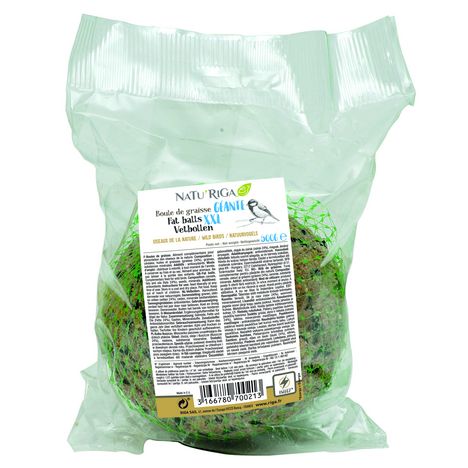 Aliment complémentaire riche en graisse pour oiseaux de la nature. La qualité des ingrédients de cette boule de graisse lui confère un aspect homogène, non cassant et pas trop dur à picorer en période de gel.