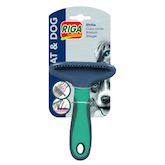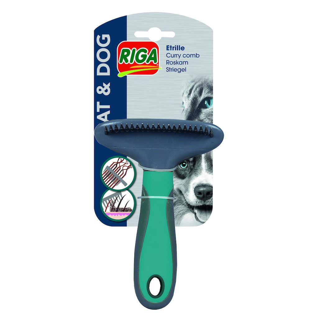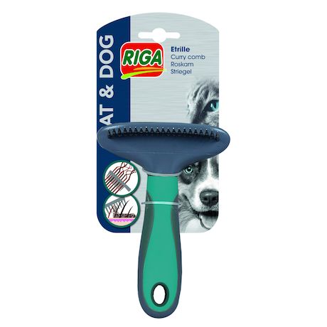 L’étrille s’utilise de préférence avant et après le brossage. Elle permet d’enlever en profondeur les poils morts et les nœuds sans casser le poil. Elle stimule l’épiderme et favorise une bonne tenue du poil.