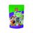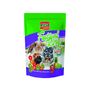Céréales, sous-produits d’origine végétale, extraits de protéines végétales, fruits 12% (biscuits verts : pomme déshydratée 4%, biscuits jaunes : ananas déshydraté 4%, biscuits rouges : fraise déshydratée 4%), substances minérales.