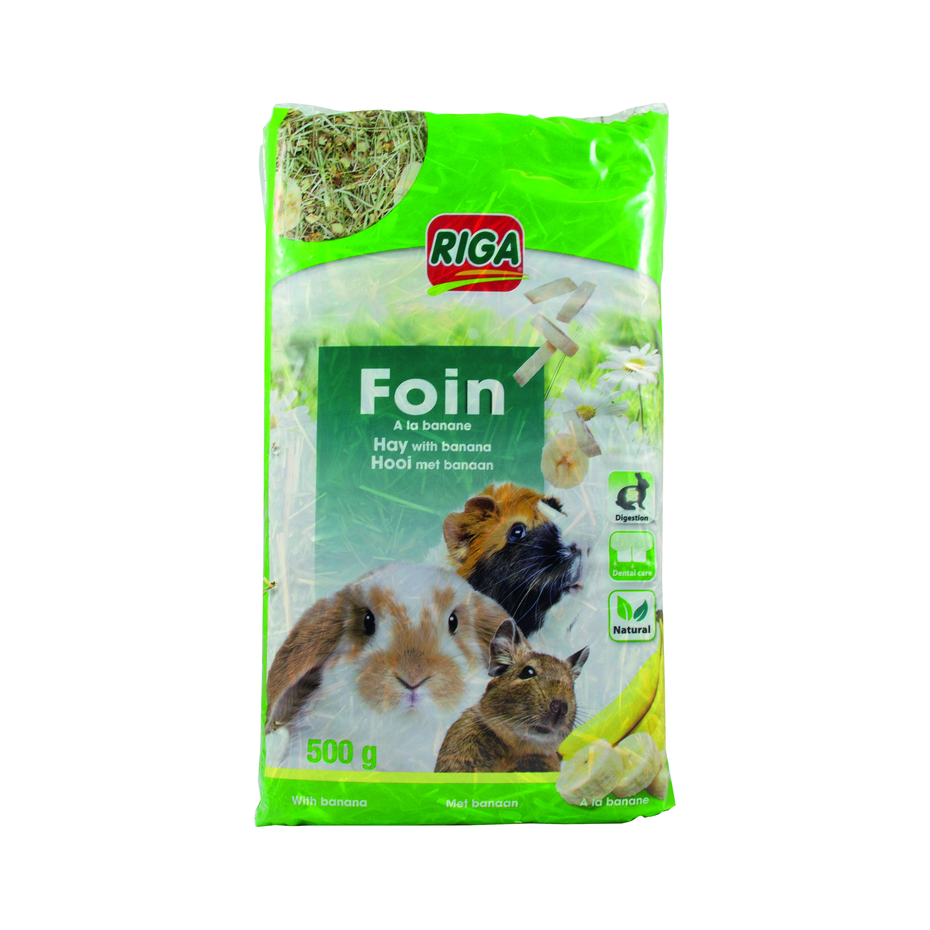 Le foin est un aliment complémentaire indispensable au bon équilibre nutritionnel des rongeurs herbivores (lapins nains, cochons d’Inde, chinchilla, dègues). Ce foin constitué de fibres longues convient parfaitement à ces animaux qui ont besoin de mâcher et de s’user les dents. Son action sur la flore digestive et le transit favorise le bon déroulement de la digestion et contribue à la régulation du métabolisme de l’animal.