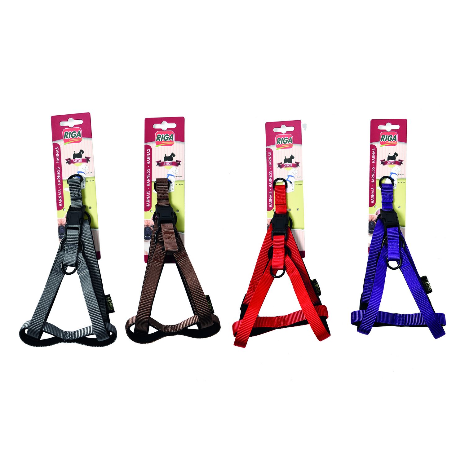 Ce harnais est facile à enfiler. Il est aussi confortable pour l'animal et sécurisé. Disponible en 4 coloris et 3 tailles.